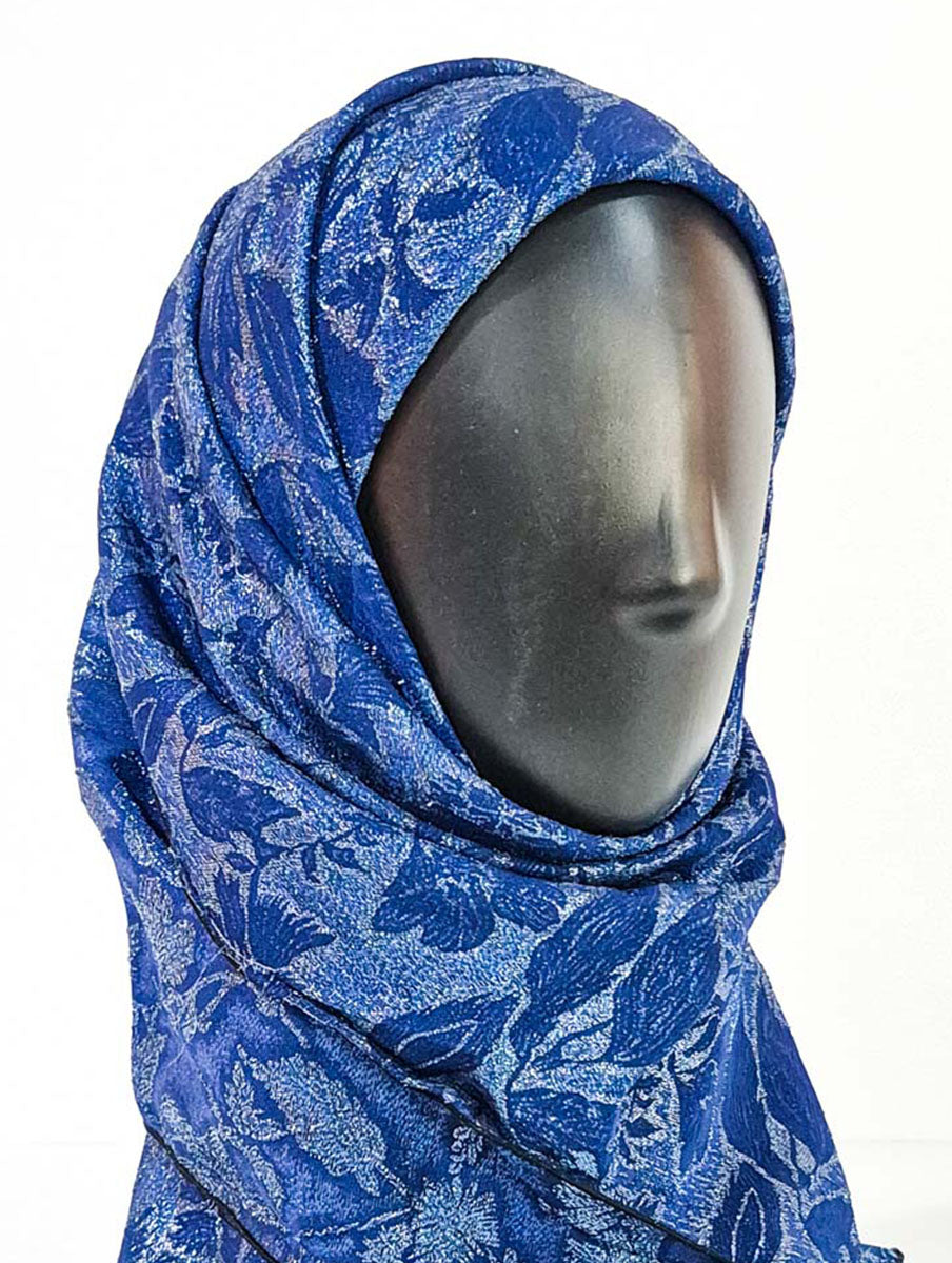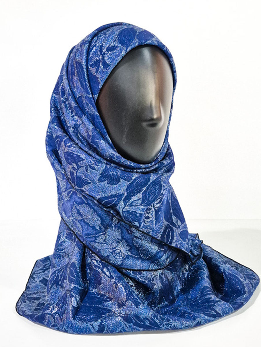 Navy Blue Floral Inspired Silk Kimono x Hijab